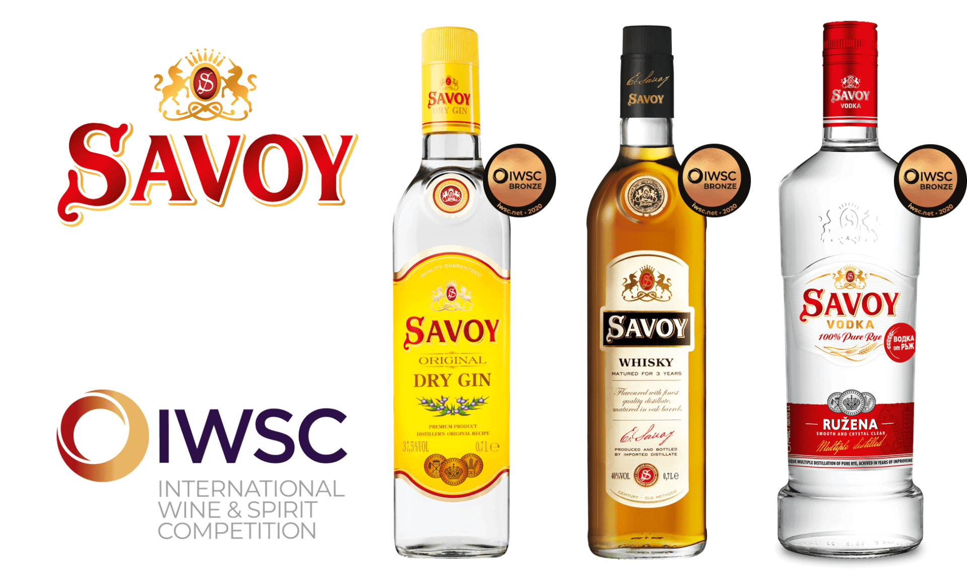 Savoy Ruzena vodka, Savoy gin and Savoy whisky won bronze medals in their categories.